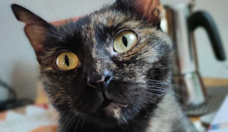La gata que ya vivía en esa casa no la aceptó, y la familia… tampoco. Les parecía fea —algo tristemente habitual con las gatas carey— y acabaron abandonándola de nuevo, lejos de su casa.